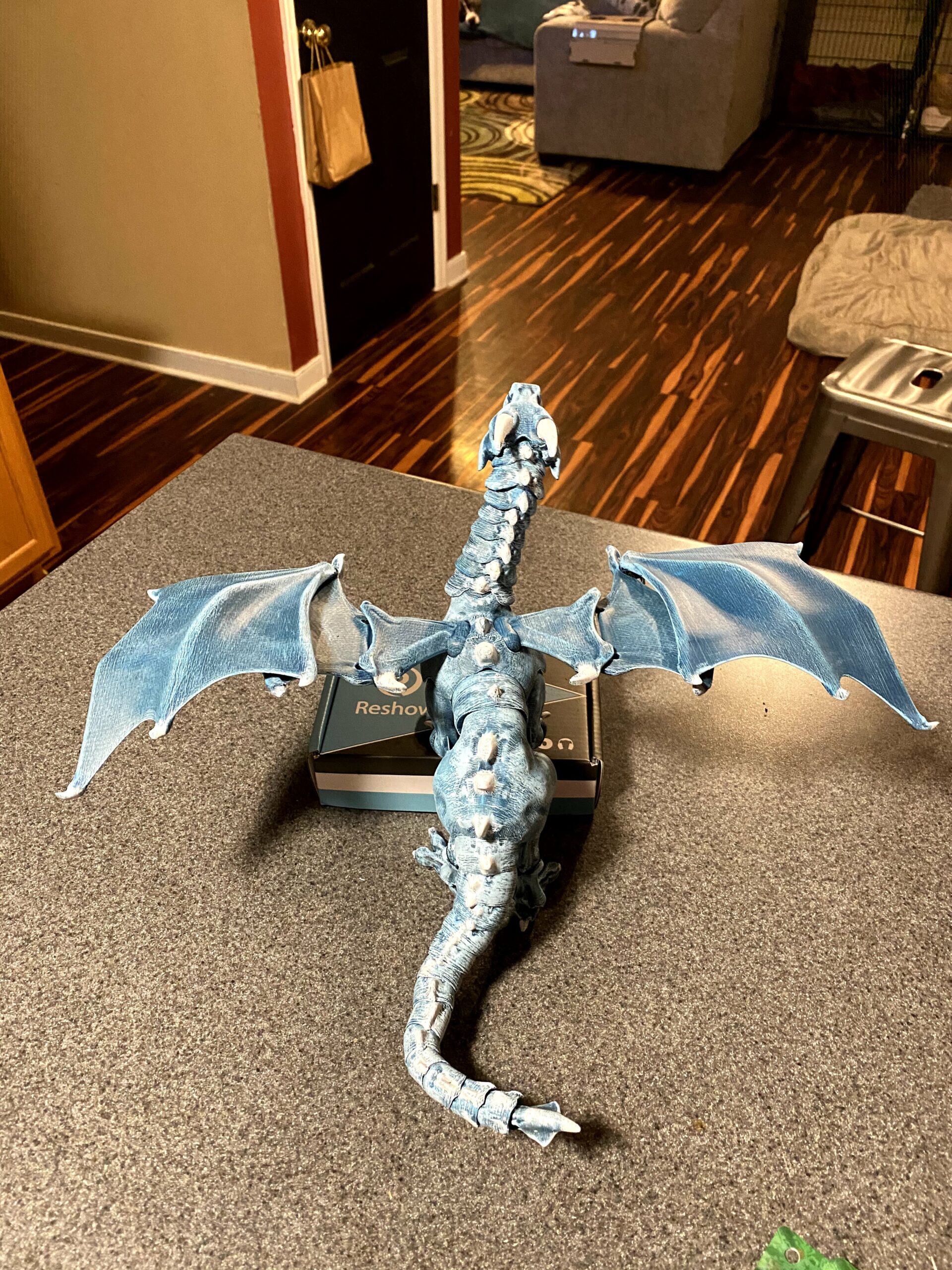 Last Christmas, I created a 3D printed, fully articulated dragon as a present for my mom. It was received well and she ranked it as one of her top presents she’s ever received. While I didn’t surpass the pony she got when she was a kid, I’ll take a top rank any day! I decided to post about this project as it took quite some time to create. I started in October 2019 and finished it a few days before Christmas 2019. I wasn’t planning on painting it as I thought I had enough filament, but, well… I don’t want to spoil the surprise!